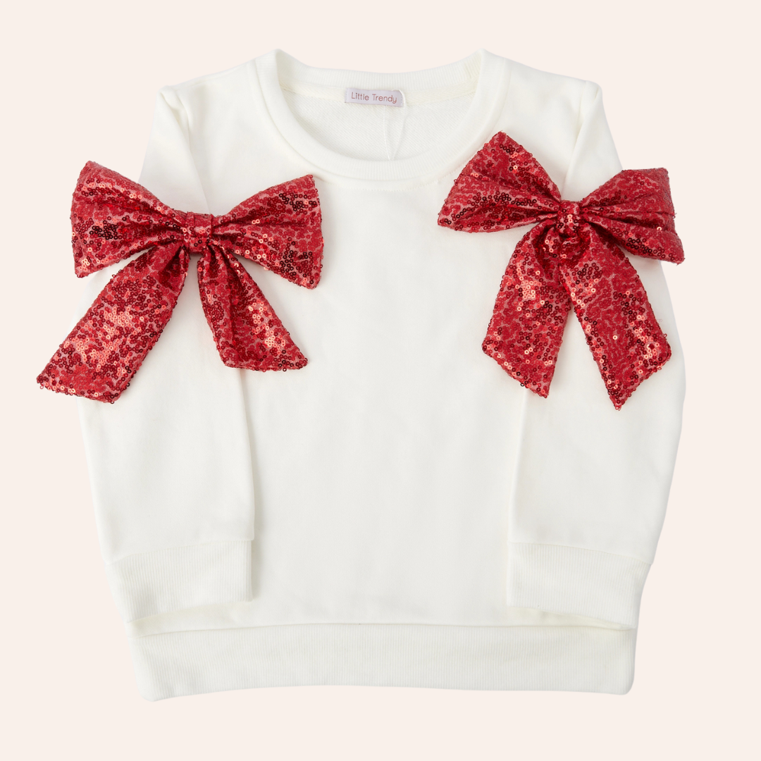 LT Christmas Sequin Bow Embellished Sweatshirt