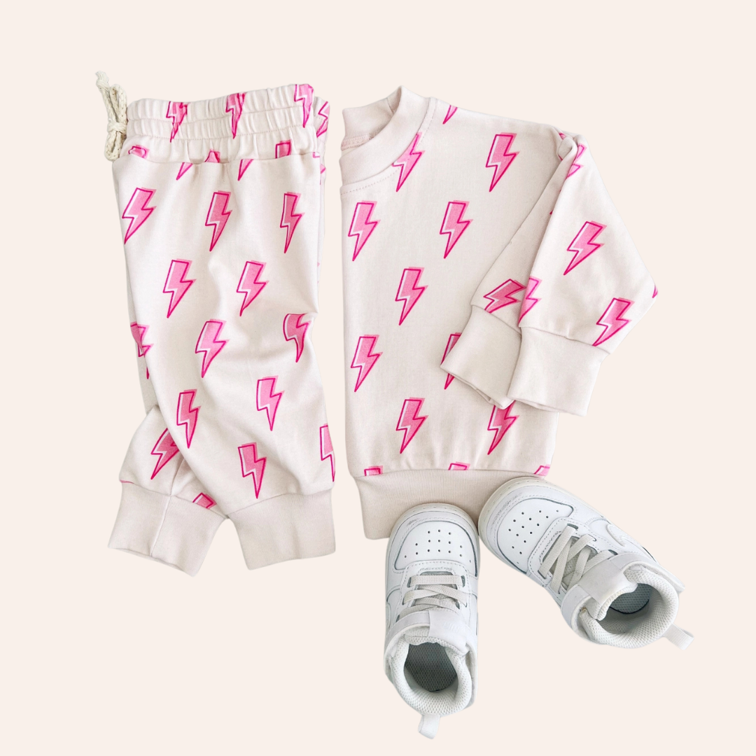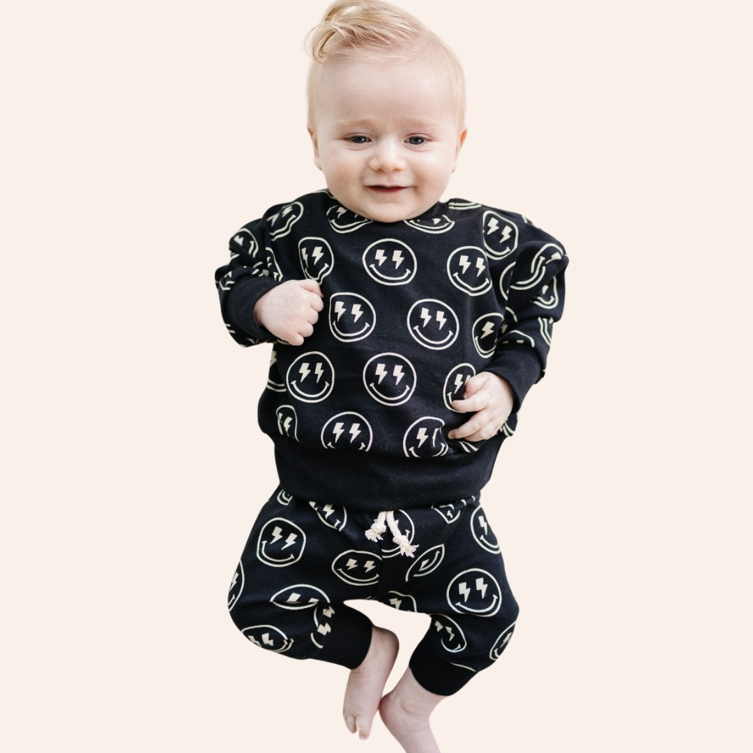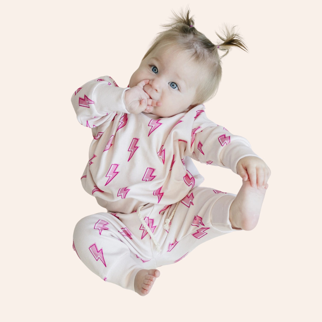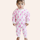 This two-piece set is made of oh-so-soft cotton, perfect for daily lounging during the upcoming Spring months! Stylish enough for a day out, cozy and comfortable for play. This sweet and cool design will be your little one's favorite must-have!