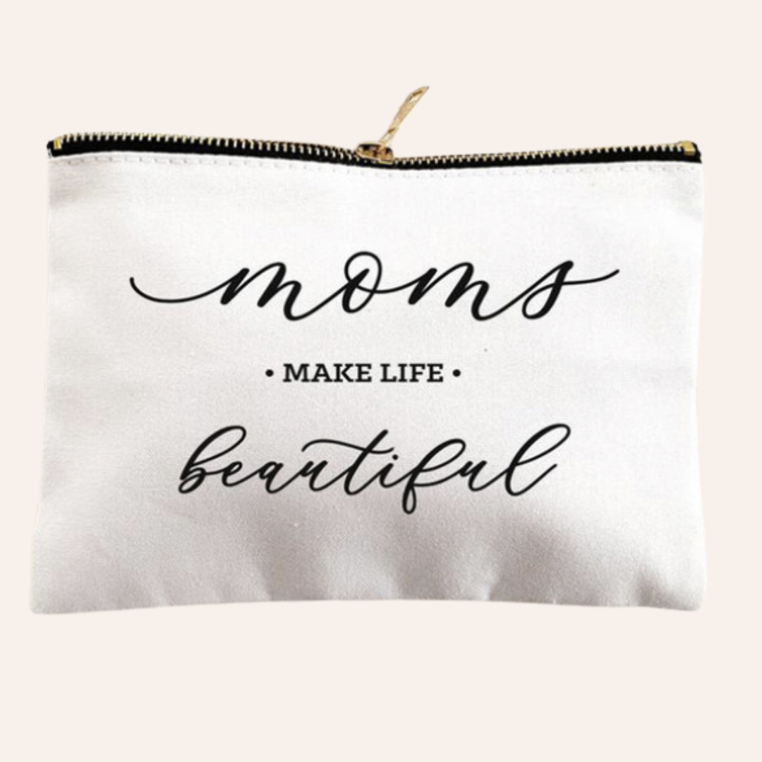"Moms Make Life Beautiful" White Pouch