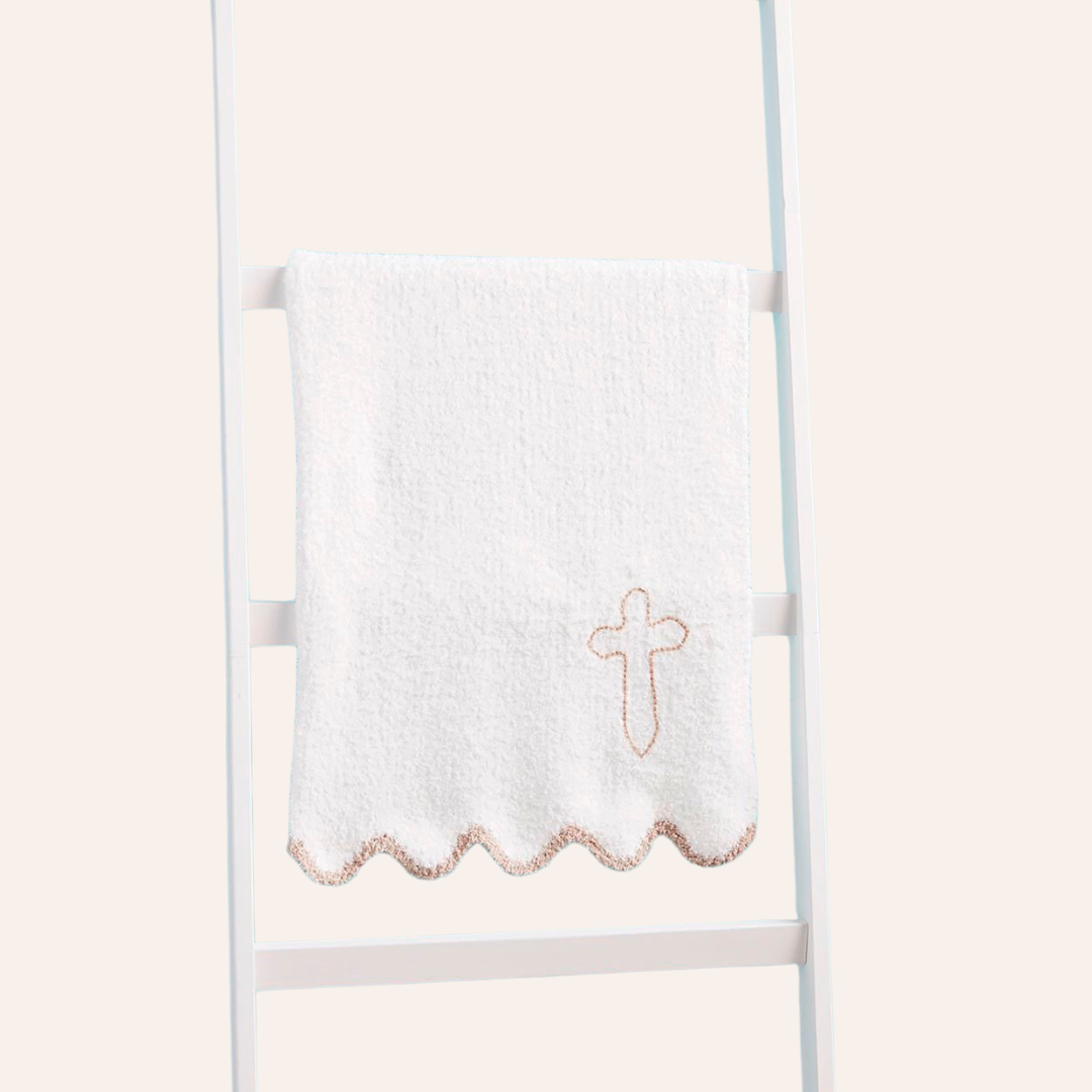 The Cross Chenille Blanket is a luxurious and cozy addition to any home, offering unparalleled softness and warmth. Crafted from high-quality chenille, this blanket features a delicate scallop trim that adds a touch of elegance to its design. The hand-stitched embroidered cross provides a unique and meaningful detail, making it a perfect gift for special occasions or a cherished keepsake. Measuring 34" x 28", it is an ideal size for snuggling on the couch or adding a layer of comfort to a bed. Made from 100% polyester, this blanket is not only soft to the touch but also durable and easy to care for, ensuring it remains a favorite for years to come.