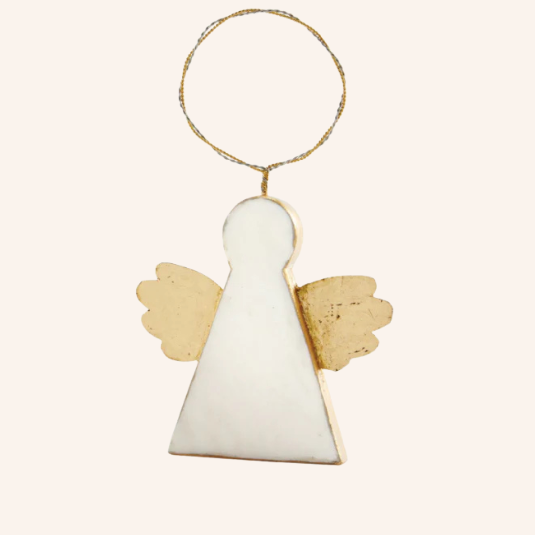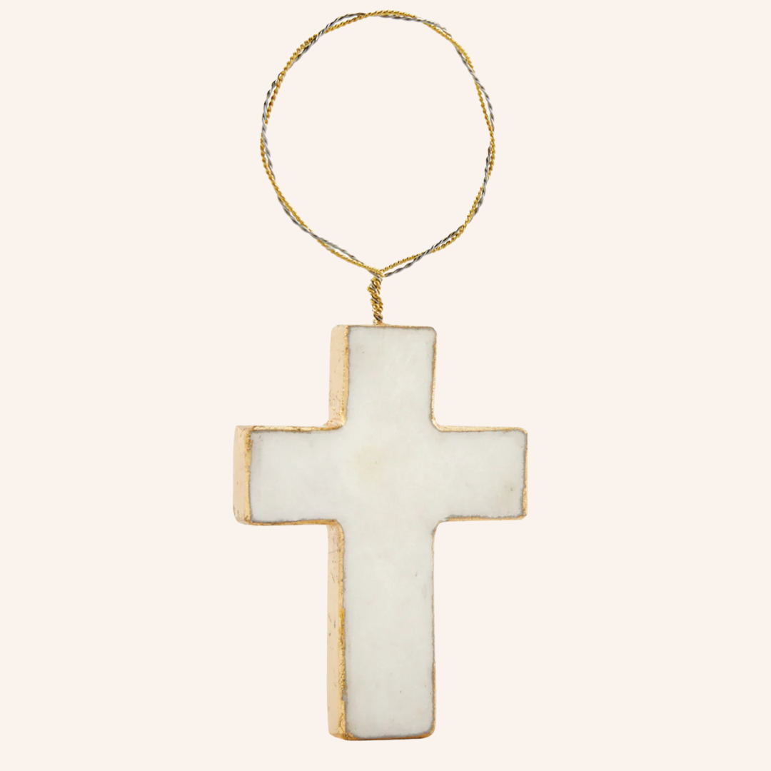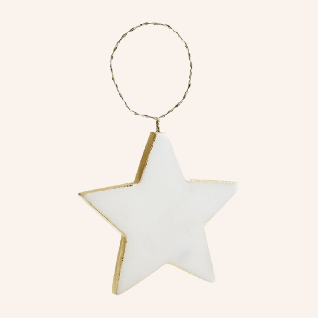 Marble ornament with foiled raw edge and pearl bead wire hanger