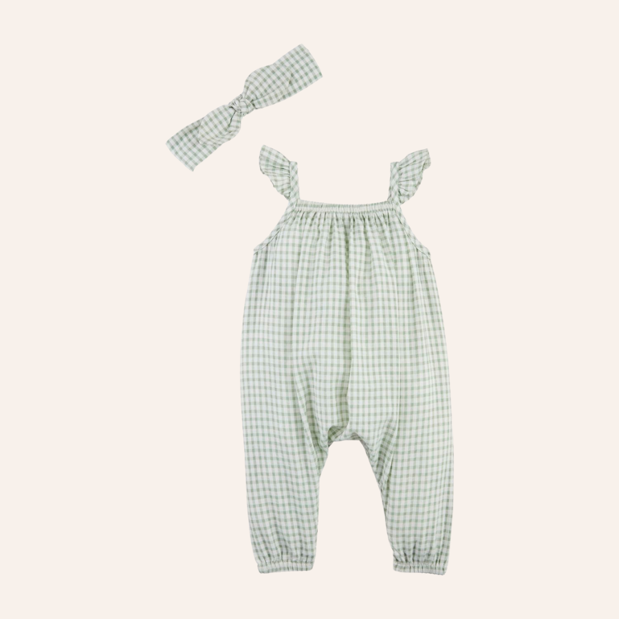 MP Green Check Longall & Headband Set