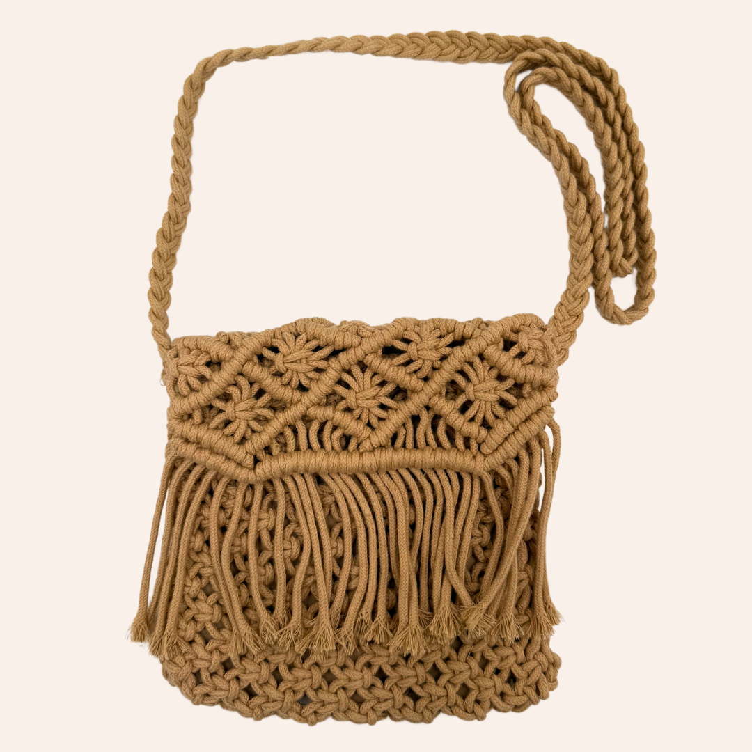 Add a touch of boho charm to any outfit with our Oatmeal Macrame Woven Boho Fringe Girls Purse. Perfect for carrying all your essentials, it's both stylish and functional. Complete with unique macrame detailing and fun fringe accents.