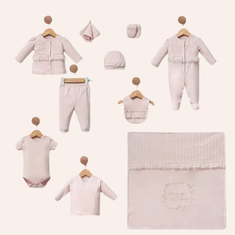 Wrap your little one in comfort and charm with this adorable baby girl set. Made from 100% soft cotton, it features delicate lace detailing for a touch of elegance. Perfect for newborns, the set combines style and softness in a lovely pink hue ideal for special occasions or everyday wear.