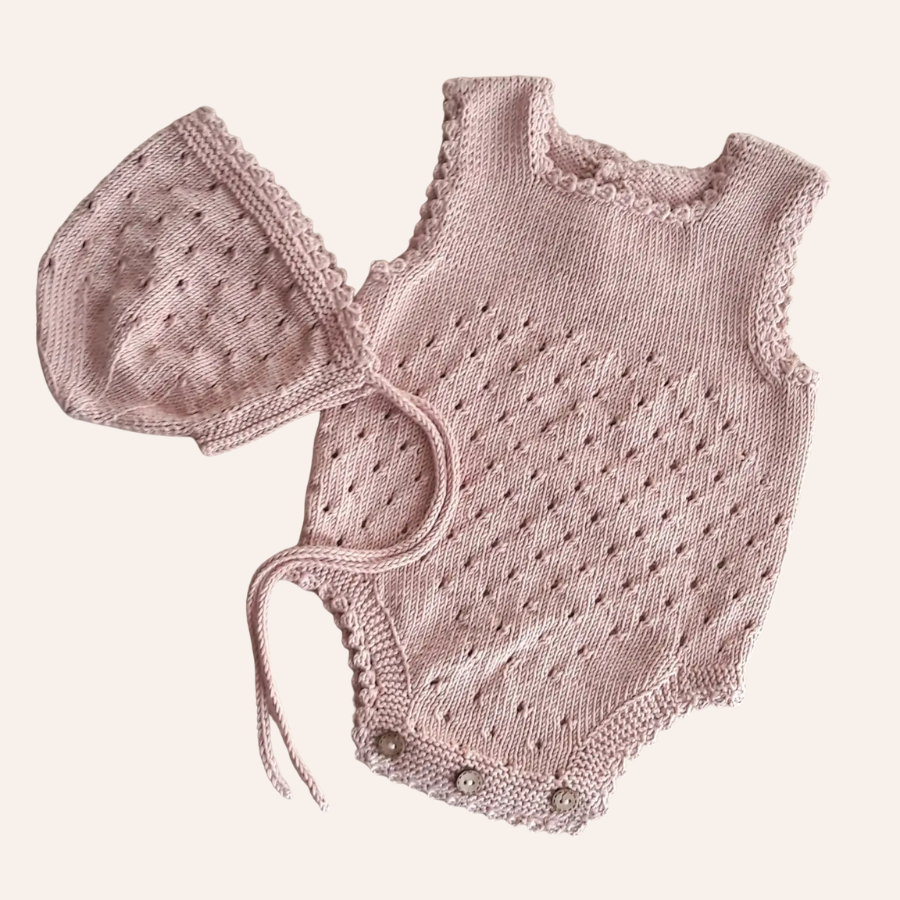OP Organic Hand-Knitted Vintage Romper & Bonnet