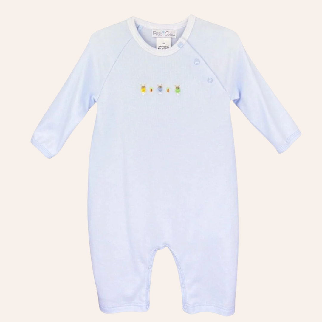 These charming Petit Ami Boys Bullion Bunny Longalls feature an adorable hand-embroidered bunny design. Perfect for spring, they offer comfort and style for your little one’s Easter or everyday wear.