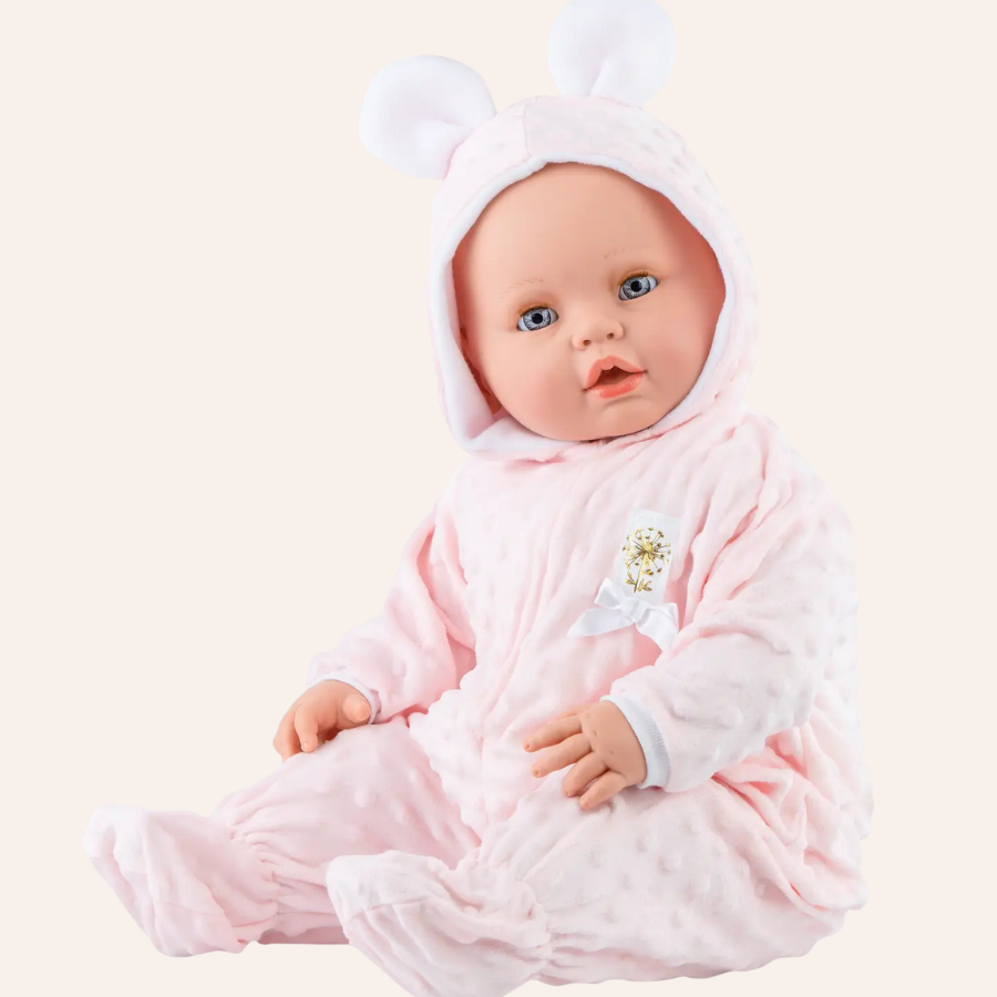 Soft-bodied wrist and tips made of high quality, lightly scented vinyl. One of our largest baby dolls used as a mannequin or in therapies for adults.