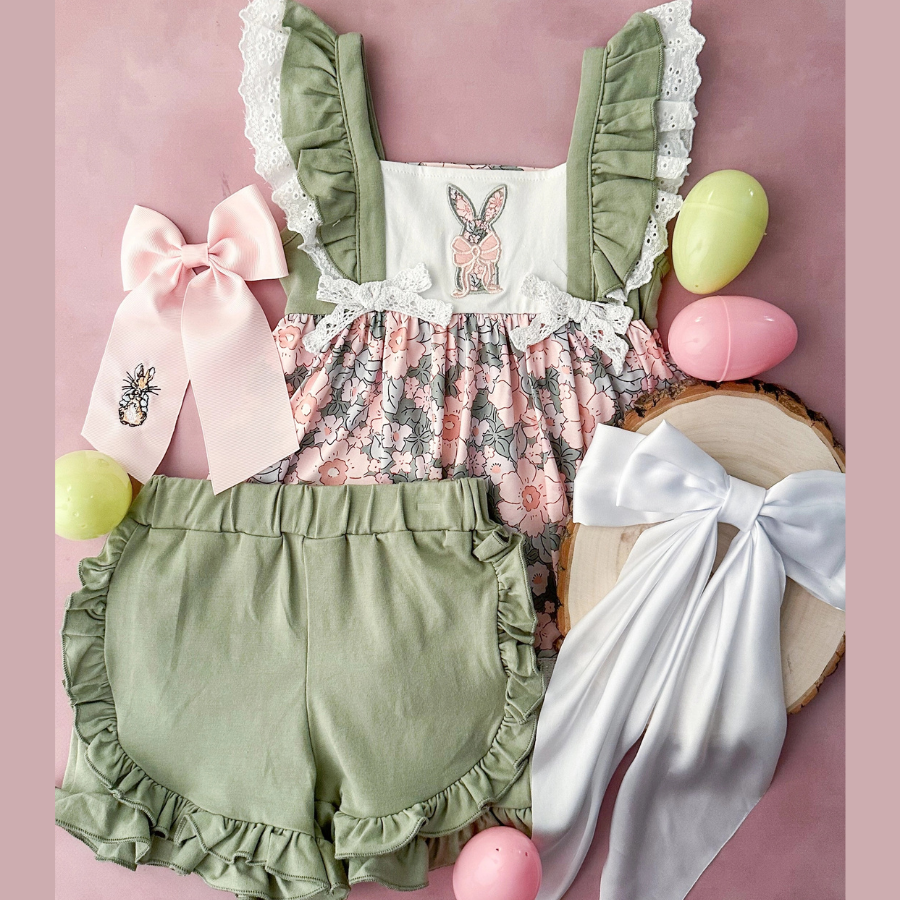 Peek-A-Boo Bunny Ruffled Olive Shorts Set