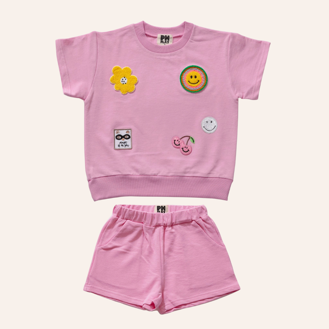 Introducing the Multi Patched Set, perfect for adding a playful touch to her summer wardrobe. Made with luxurious cotton material, this set boasts colorful patches and solid colors, making it ideal for relaxing on a warm day. Upgrade her loungewear collection with this must-have set.