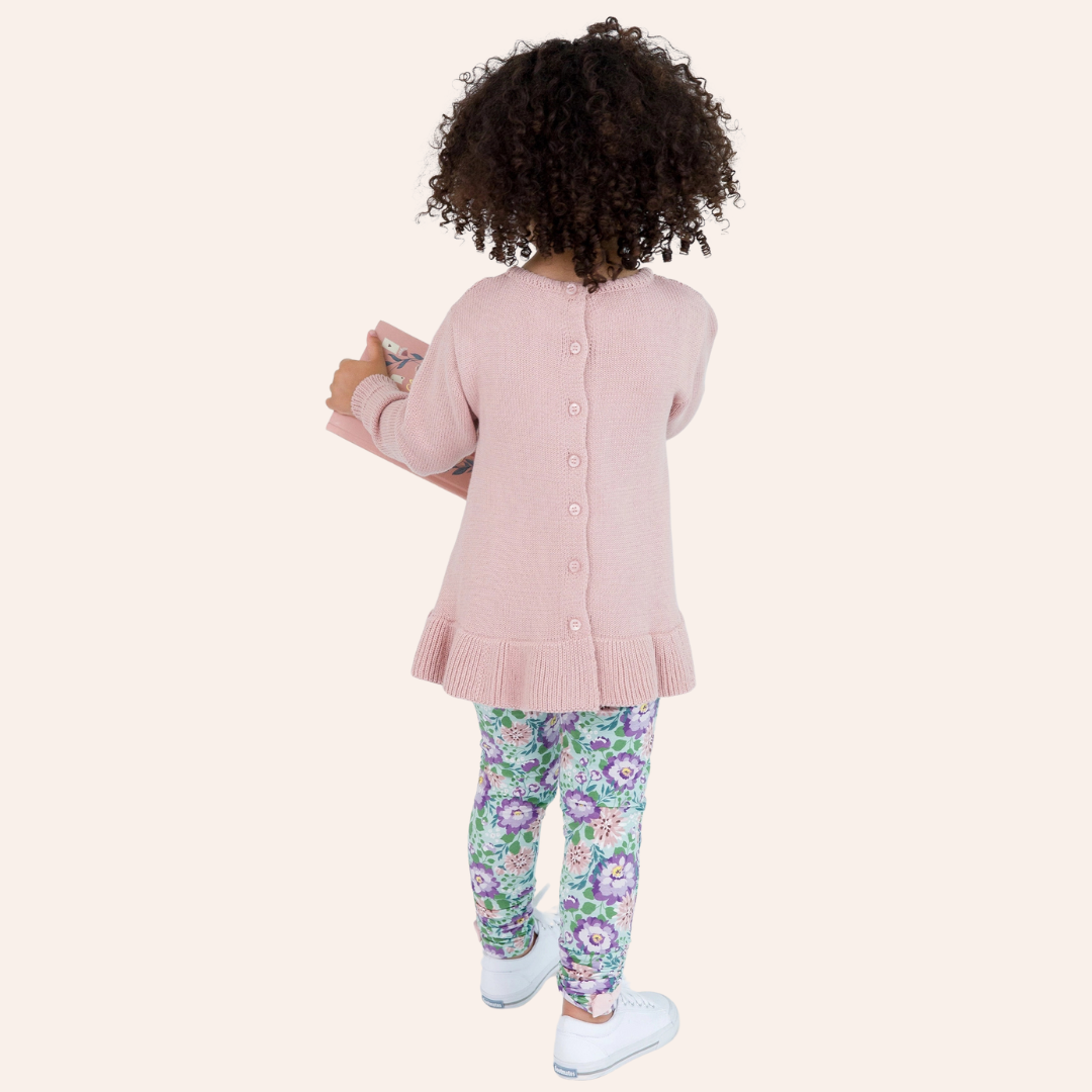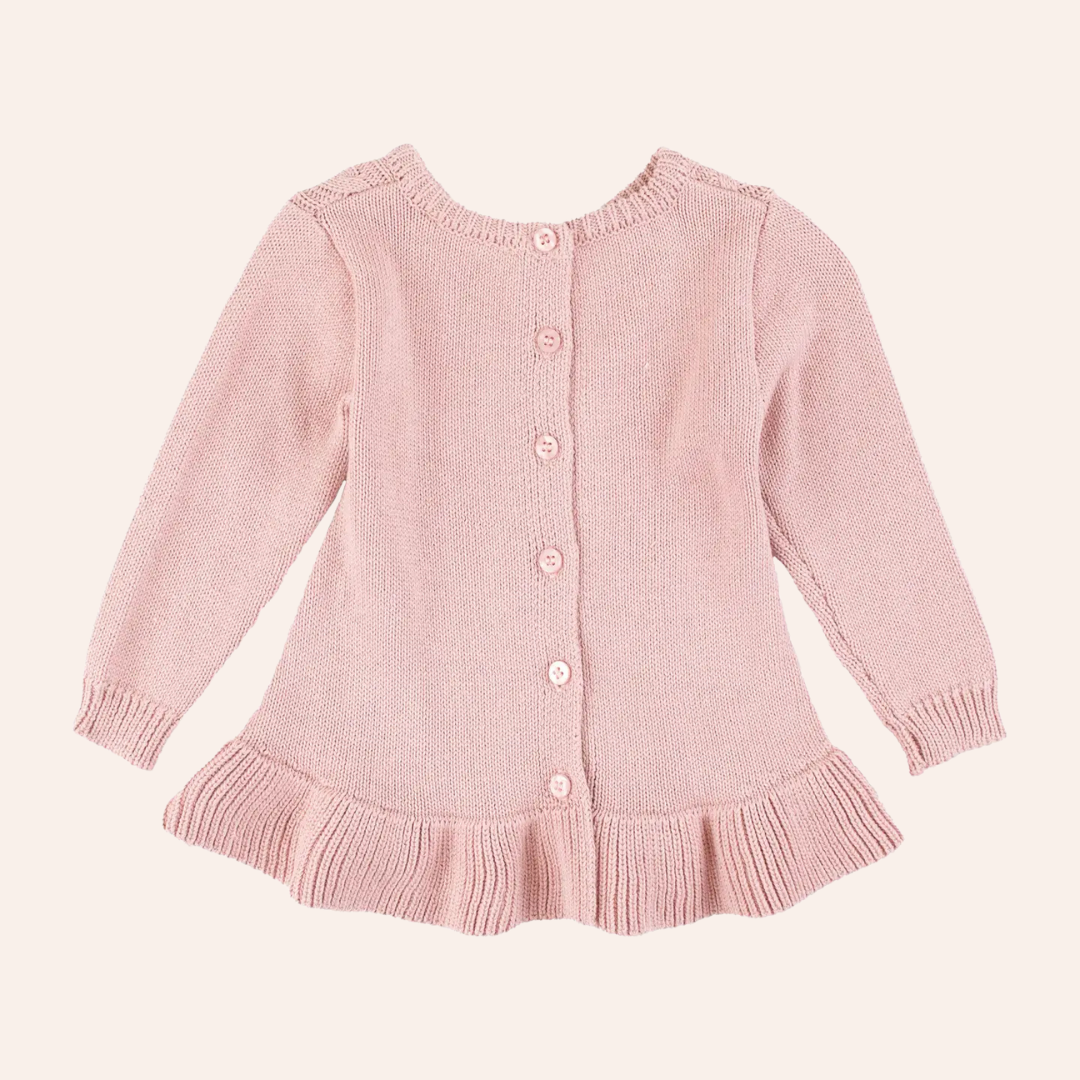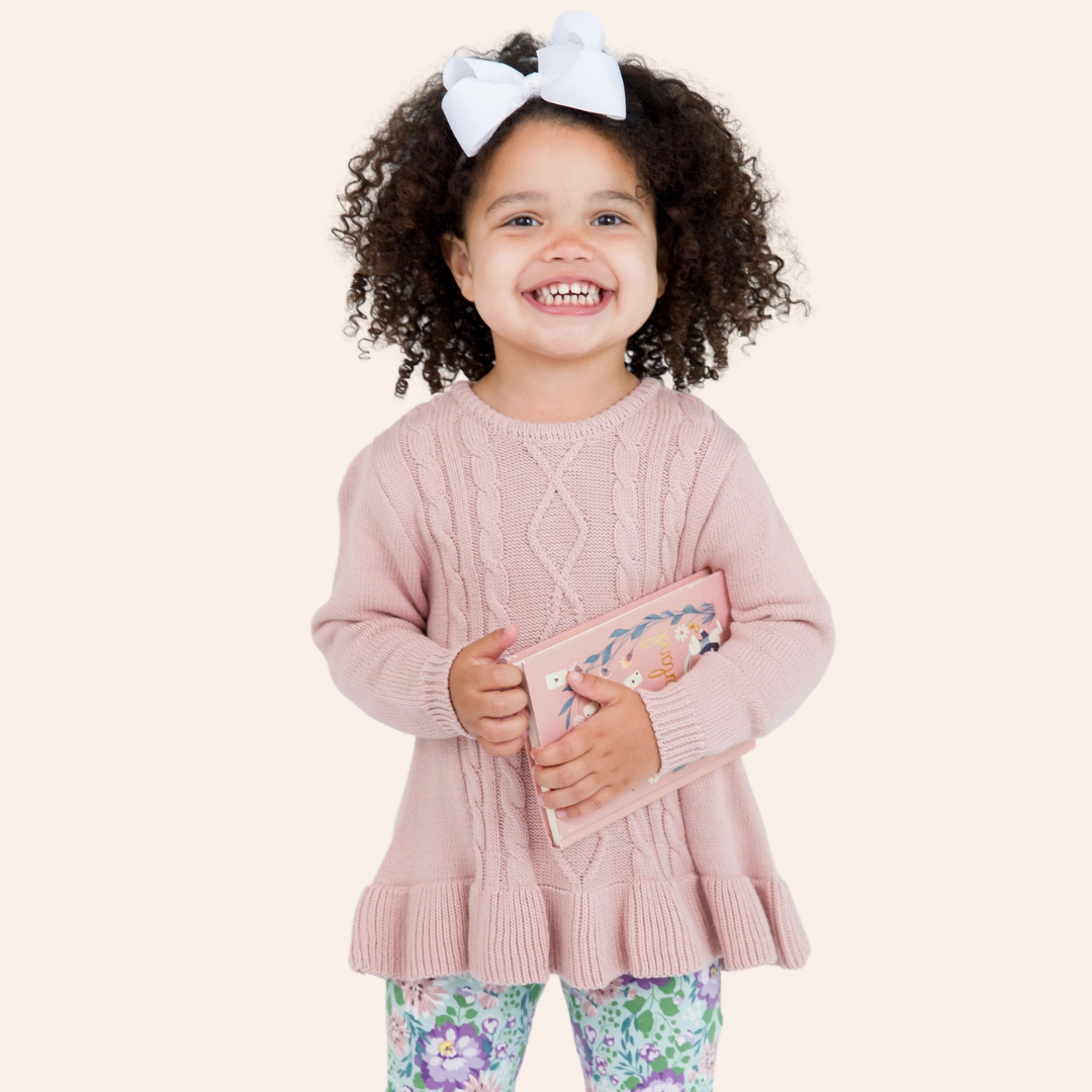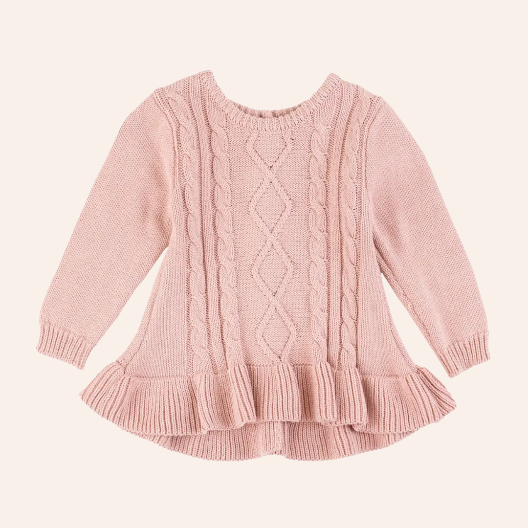 RB Girls Pale Mauve Ruffle Hem Cable Knit Sweater