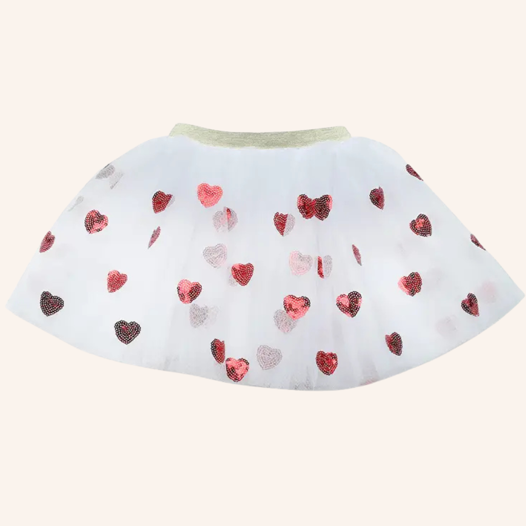 Soft white tulle tutu with Red Sequin Hearts. Available in sizes 1-2 years and 2-6 years. So adorable! Great for everyday wear and for Valentine’s Day too.