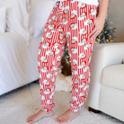 cozy, relaxed-fit pajama pants featuring a festive Santa Claus Lane print, perfect for comfortable lounging and holiday nights.