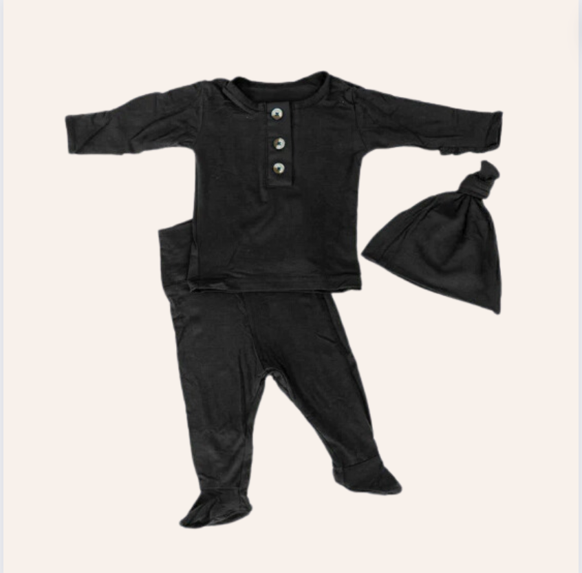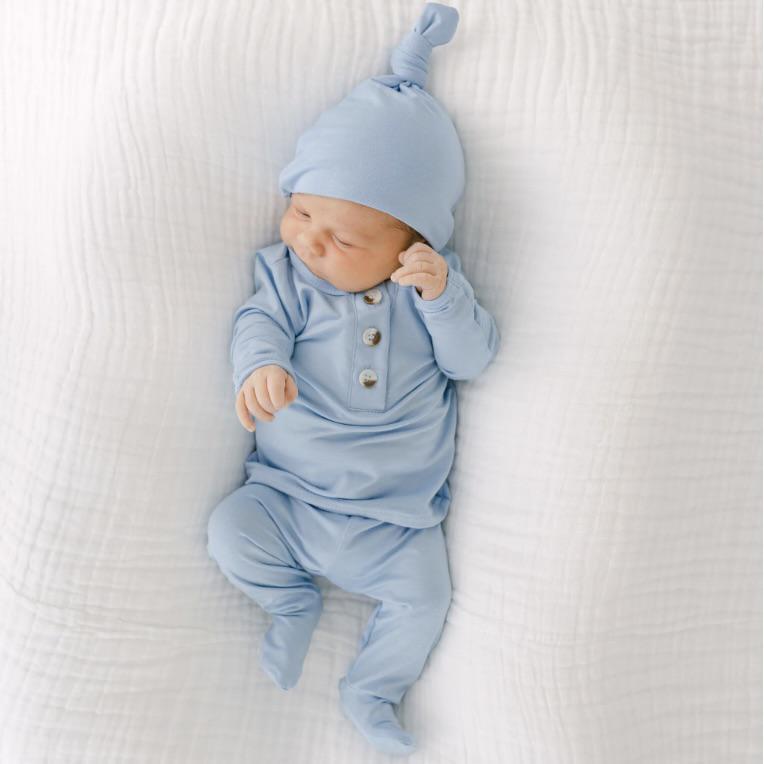 You're going to love this baby outfit! Made from the same soft and stretchy material as our swaddles and gowns this top & bottom outfit and hat set will be your new favorite baby attire. This newborn set is the perfect "coming home outfit" for baby boys or baby girls with room to grow!