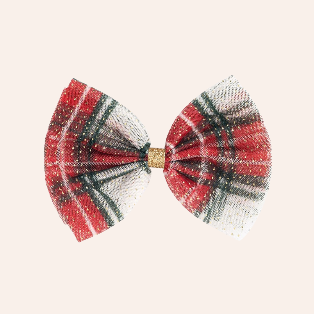 Every little girl needs the perfect hair clip to complete her look! The Christmas Plaid Tulle Bow Clip is the perfect hair accessory for celebrating Christmas.