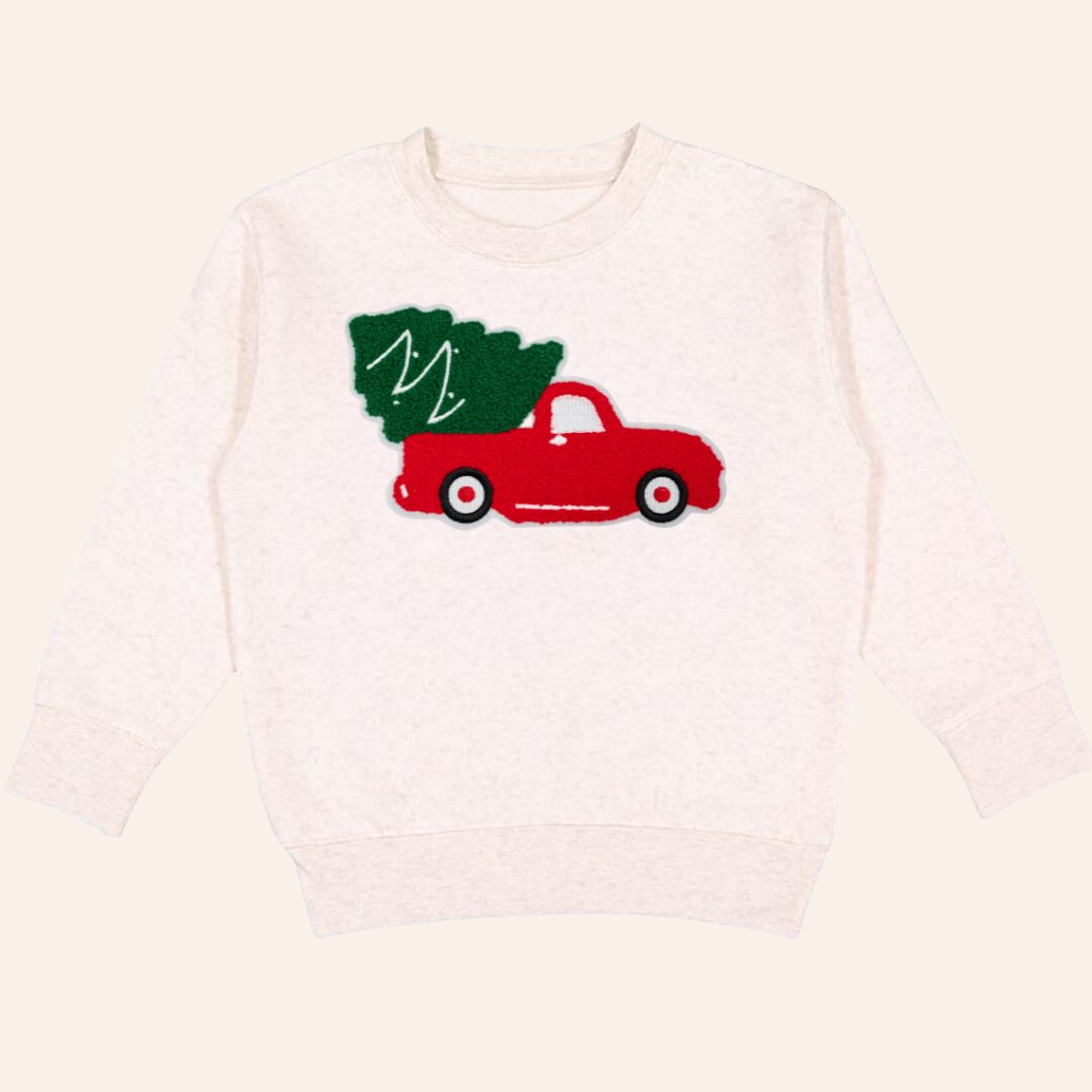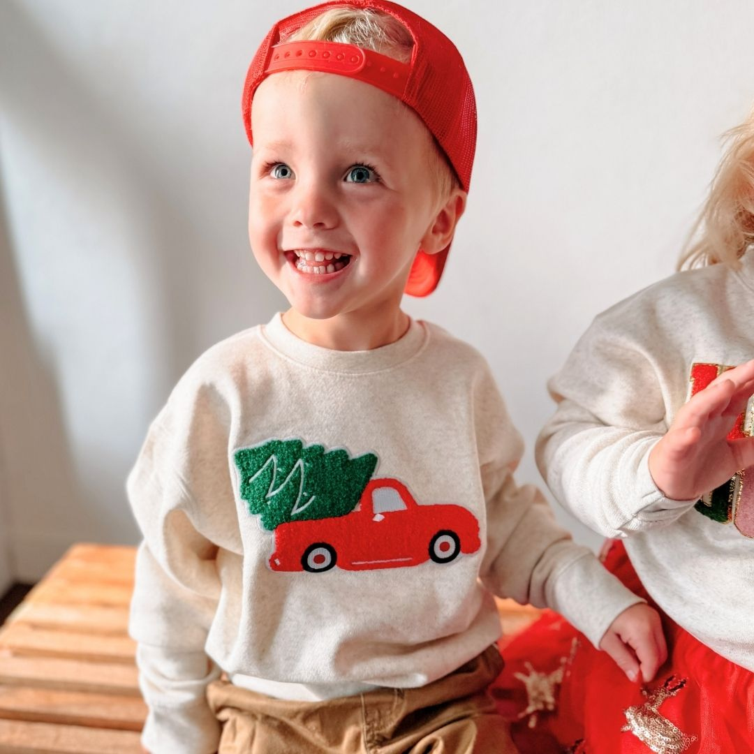 The Christmas Truck Patch Christmas Sweatshirt is a fun and festive sweatshirt for celebrating Christmas!