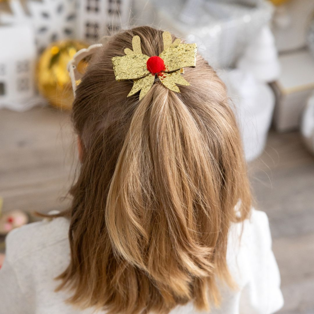 Every little girl needs the perfect hair clip to complete her look! The Reindeer Glitter Christmas Bow Clip is the perfect hair accessory for celebrating Christmas.