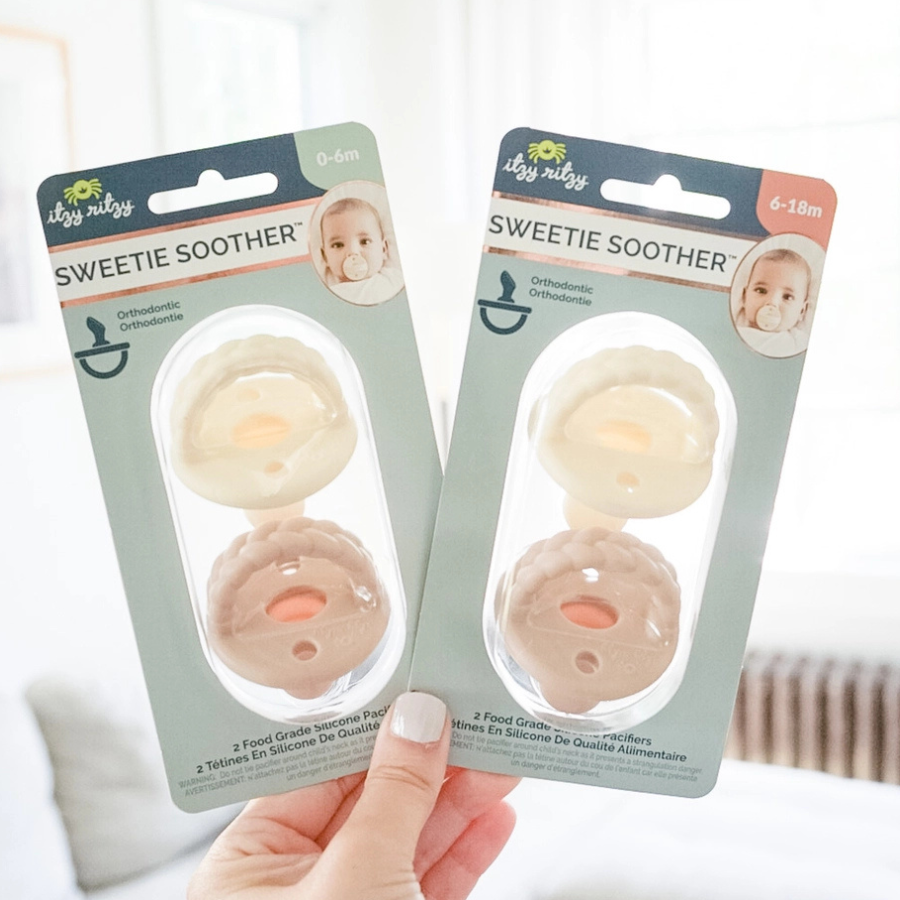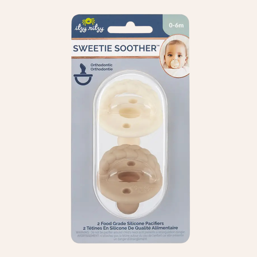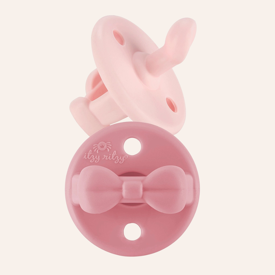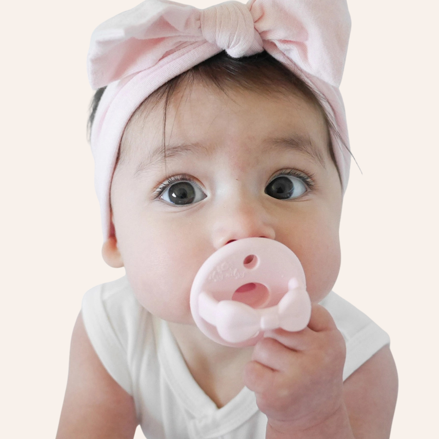 Our precious pacifiers feature a one-piece design made of 100% food grade silicone. The soft, orthodontic nipple shape reduces pressure on the gumline while soothing baby. Pack of 2 pacifiers. Available age ranges: 0m-6m Free of PVC and BPA. CPSIA compliant.