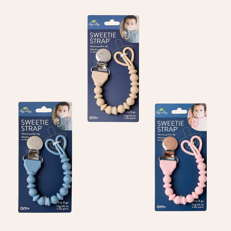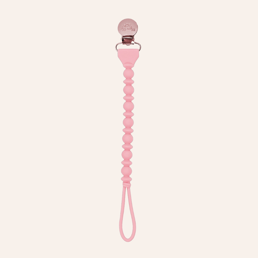 Say goodbye to lost pacifiers! These Sweetie Strap™ is made of 100% food grade silicone and keeps pacifiers in place while also looking stylish with our braided and beaded patterns. The secure clasp is gentle on clothes, and the one-piece silicone cord is easy to attach to almost any pacifier, teether or small toy. This adorable Sweetie Strap™ is the perfect combination of fashion and function!