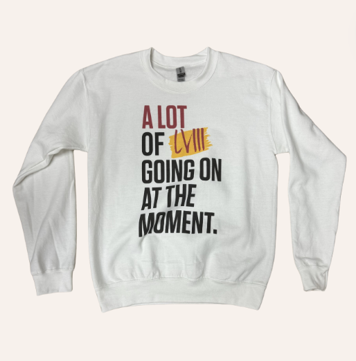 Get cozy and stylish in our A Lot of Super Bowl LVIII Going On Sweatshirt! Made for both youth and adults, this sweatshirt features a playful nod to the Taylor & Kelce Love Story. Whether you're a Swiftie or a Chiefs fan, this sweatshirt will add some fun to your wardrobe. Go Chiefs!