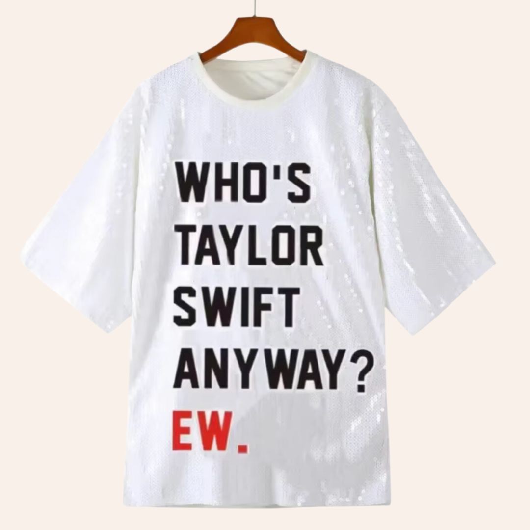 "Who Is Taylor Swift Anyways? EW " Sequins Short Sleeve T-Shirt Jersey