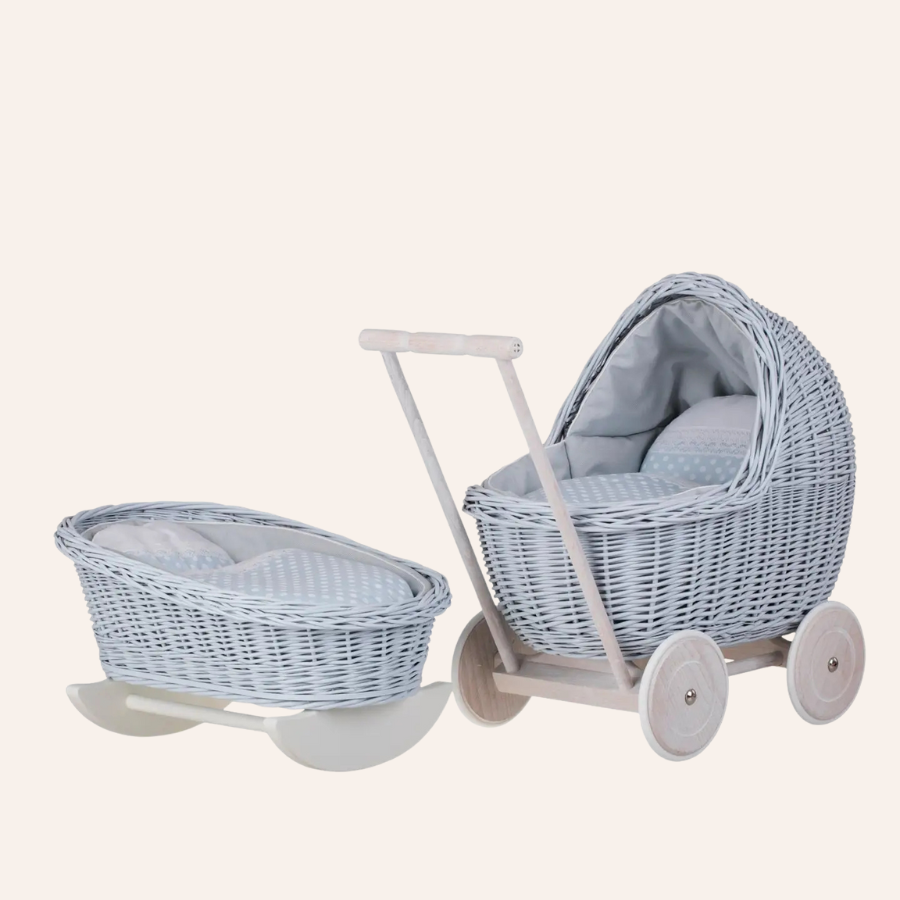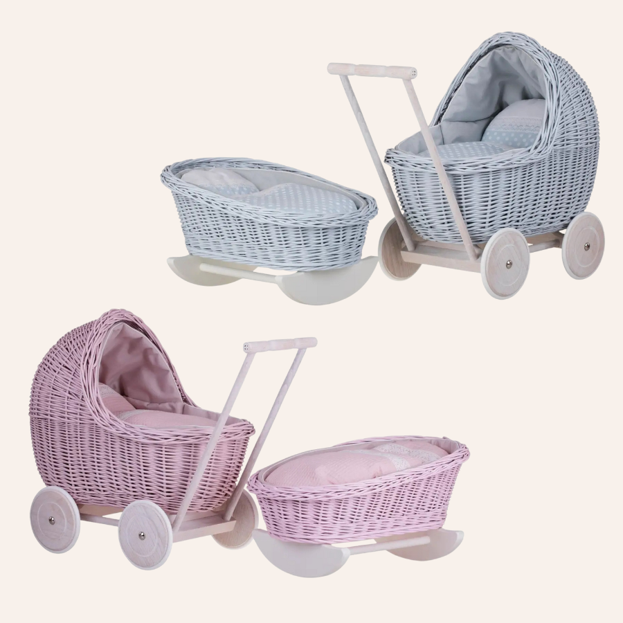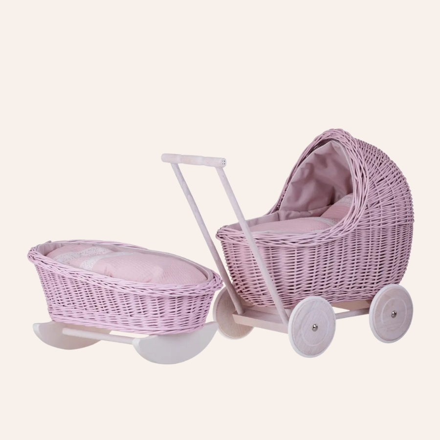 Wicker set for a little princess - carriage together with a cradle in two colors of your choice pink or blue.