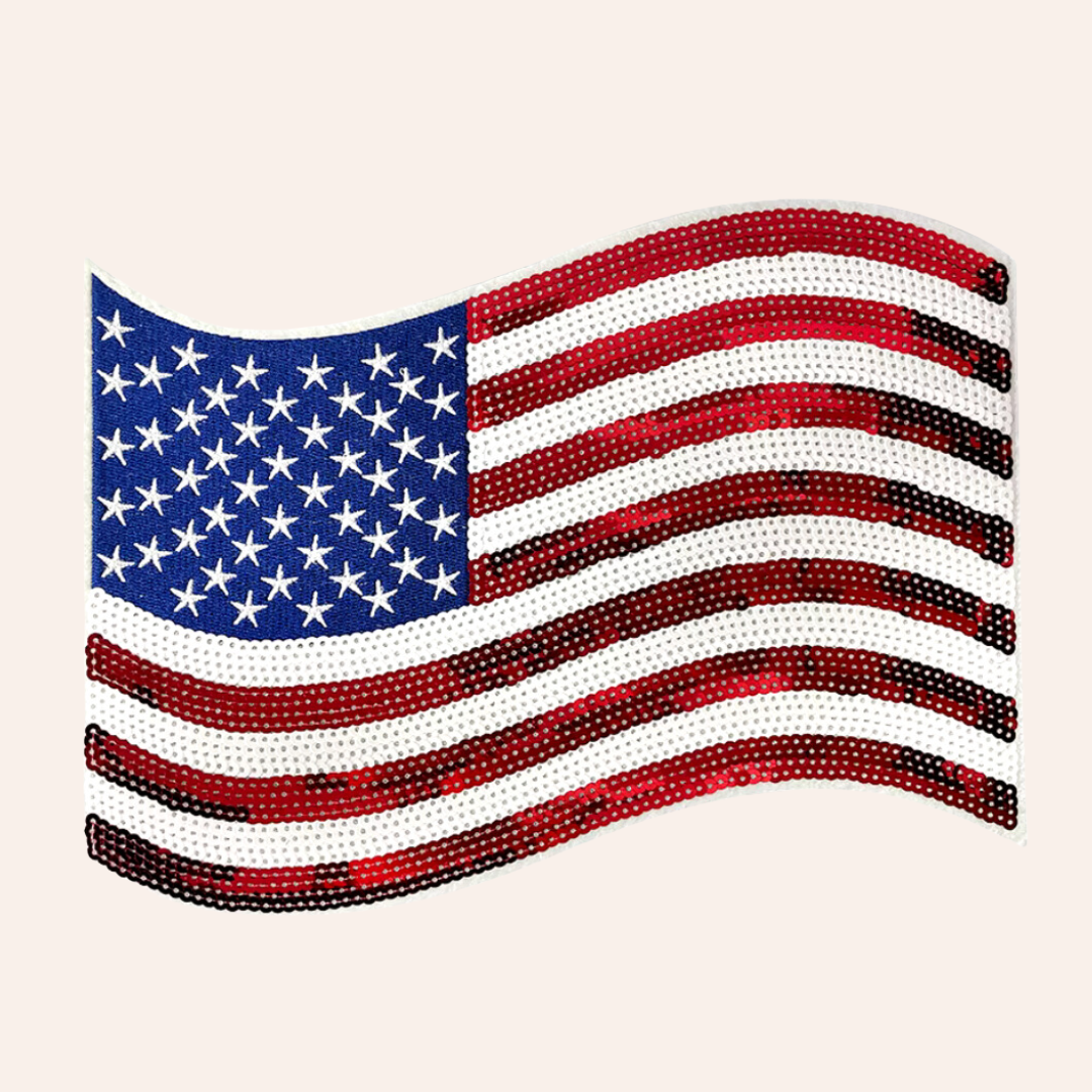 Show your pride with the XL American Flag Sequin Patch! This bold, shimmering patch features the iconic stars and stripes in dazzling sequins, adding a patriotic touch to jackets, bags, and more. Perfect for celebrating your love for the USA.